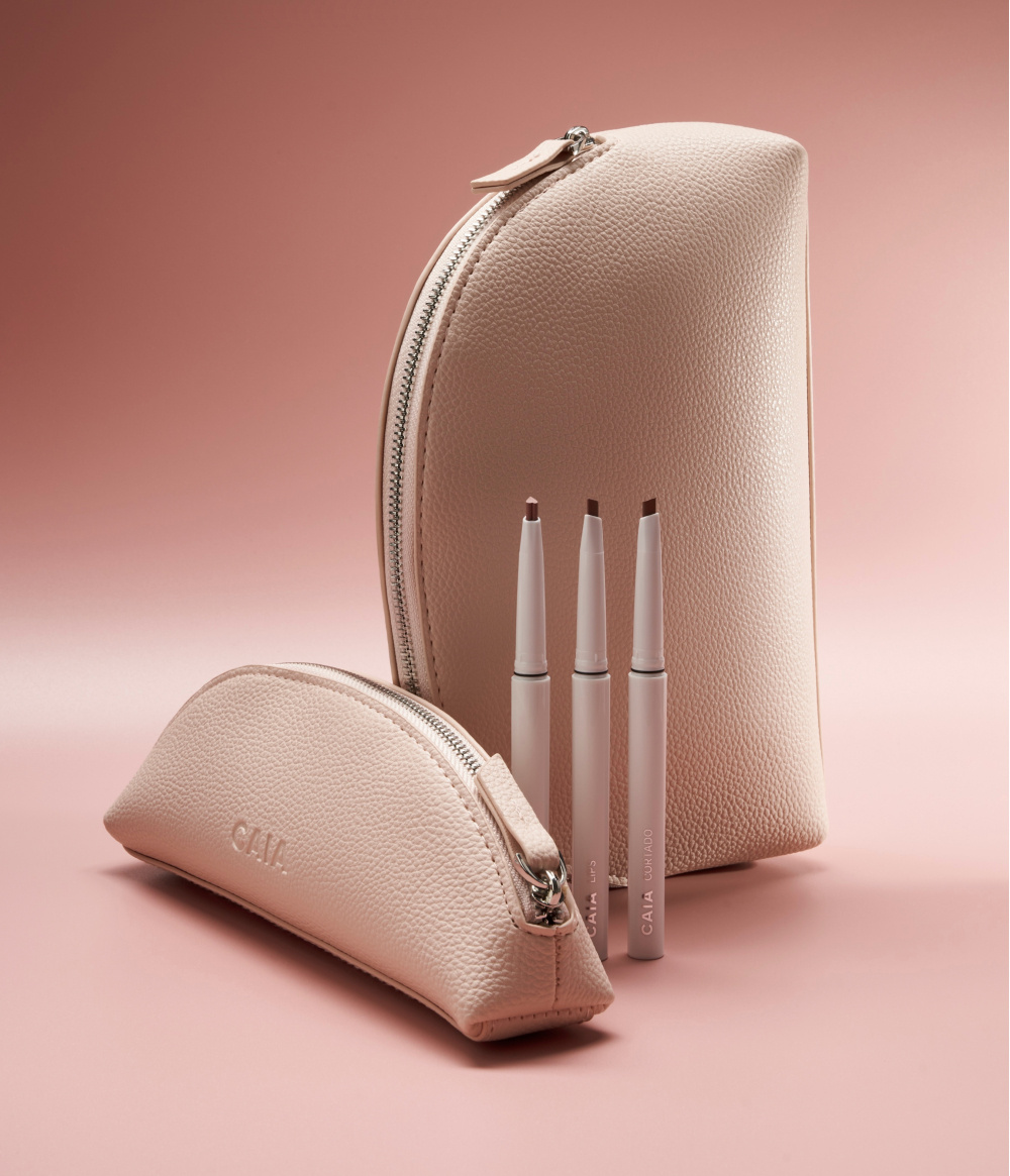 Die Lipliner verfügen über eine cremige, leichte Textur und eine herzförmige Spitze für sanfte Definition und müheloses Verblenden. Die beiden Half Moon Bags bestehen aus weich strukturiertem veganem Leder und lassen sich weit öffnen – für einfachen Zugriff zu Hause oder unterwegs.